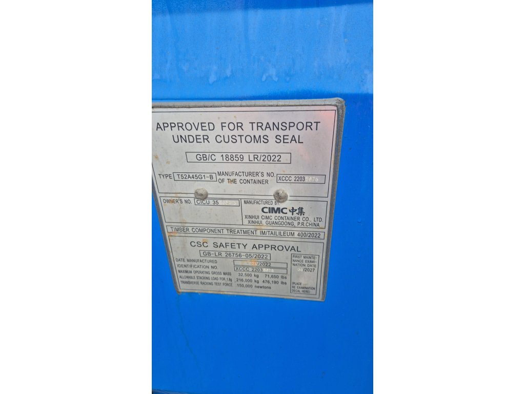 Kontejner po první cestě nebo 2-3 použitý, ale stále ve velmi dobrém technickém stavu. Drobné škrábance a menší promáčkliny, nic vážného. Barva může být mírně vybledlá, ale stále dobrá. Dveře fungují dobře, těsnění je nepoškozené. Na podlaze mohou být drobné známky opotřebení, ale je stále pevná a bez větších rýh. Vhodné pro zákazníky, kteří hledají použitý kontejner v zachovalém stavu s dlouhou životností.